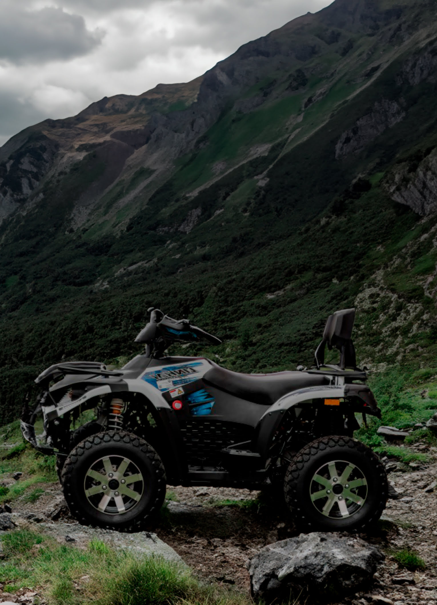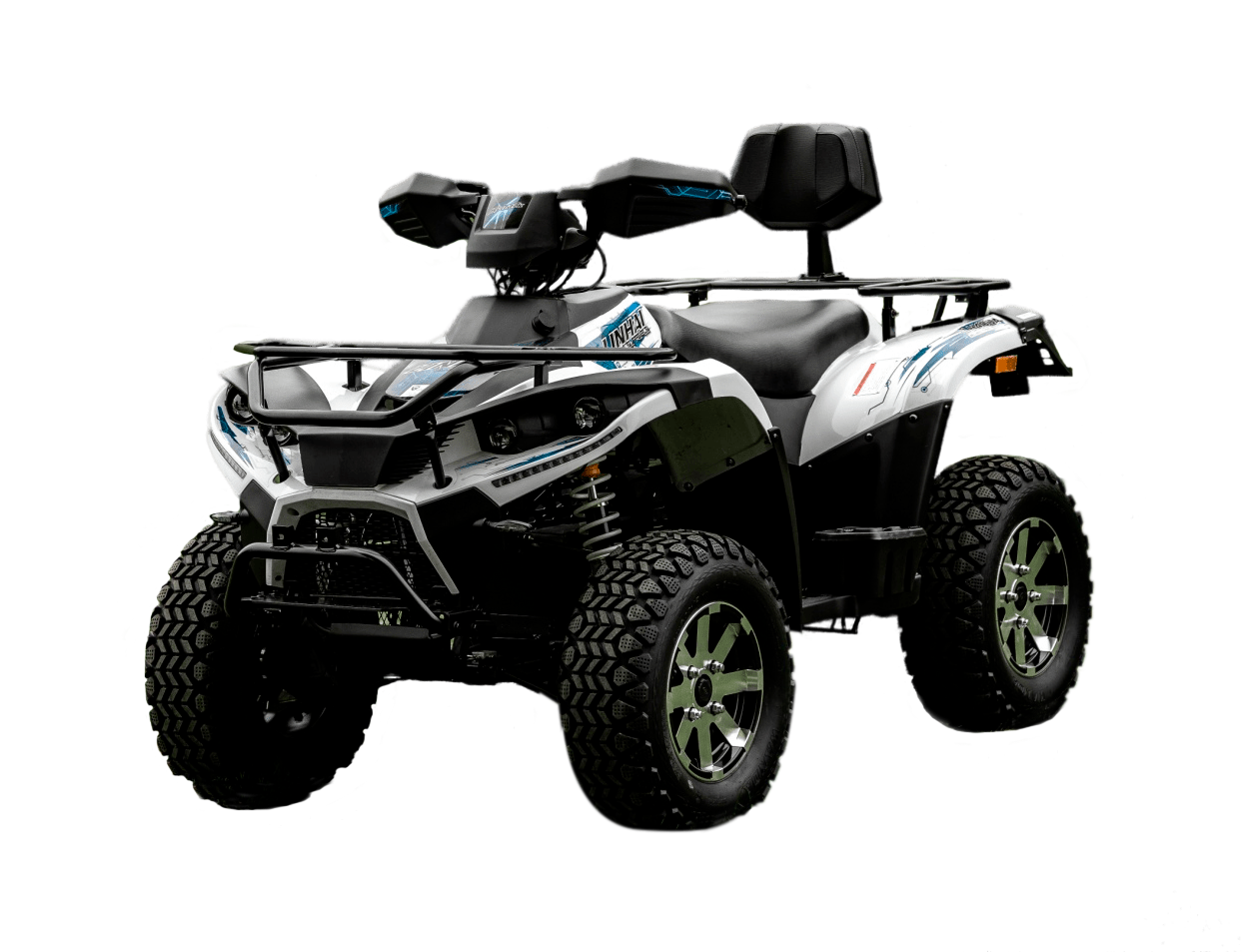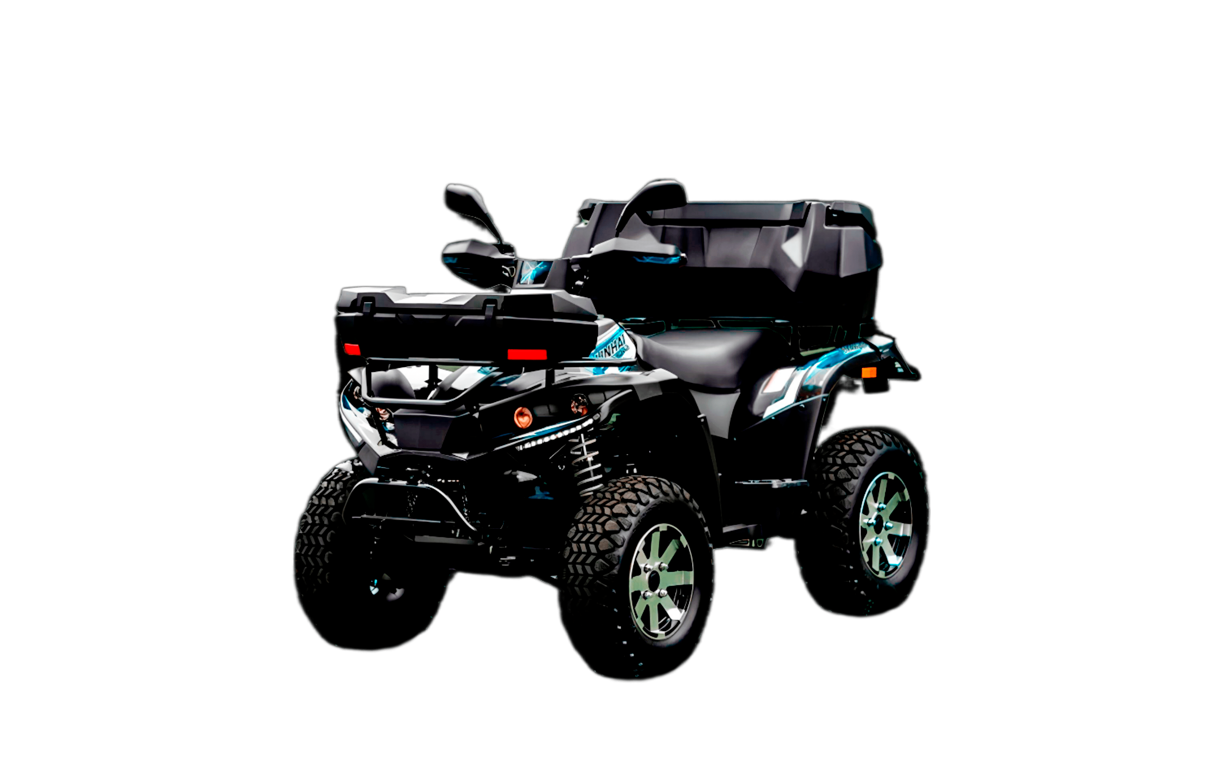 Комплектация электрического квадроцикла богата. 12-дюймовые легкосплавные диски обуты в бесшумные шины Wanda, на передней и задней осях установлены эффективные дисковые тормоза с гидравлическим приводом, а пассажиры высоко оценят просторное двухместное сиденье. Помимо современных светодиодных фар и фонарей, в списке базового оснащения удастся найти цифровую приборную панель, фаркоп, зеркала, прикуриватель, порт USB, магнитный бардачок, а также спинку и подножки для пассажира!